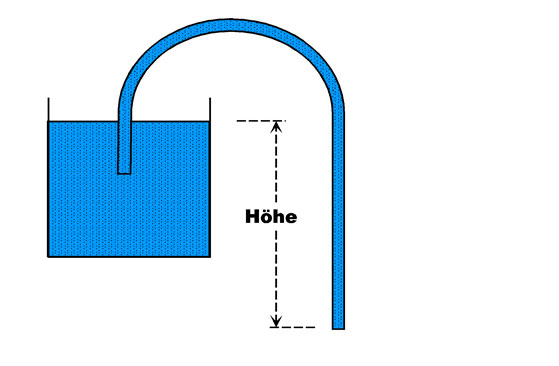 Gefäß ist. Die Schwerkraft im tieferen Teil des Schlauches „hebt“