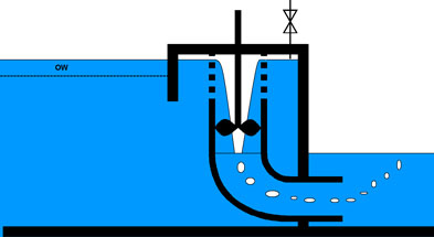 Luftblasen. Wenn der Querschnitt des Saugrohrs an der senkrechten