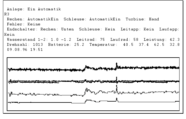 des Oberwasserstandes, die Steuerung des Rechens und der Schleuse,